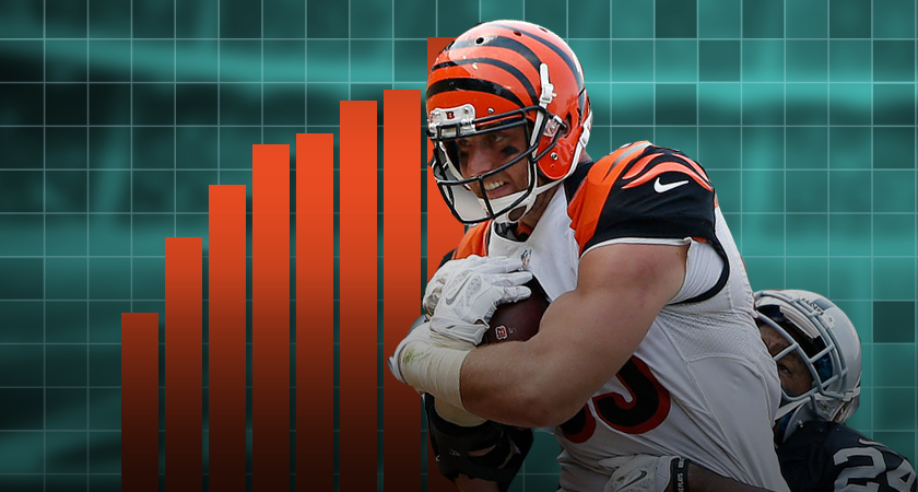 This is the Patriots spreading things out against Buffalo in week 2, I expect the Bengals to do the same. The Bills’ stout front four will cause the Bengals to attack the Bills through the air. Bills CB Stephon Gilmore is having a breakout year and I would expect him to shadow Green. While I don’t think Gilmore completely shuts him down, he will do a good enough job to Have Dalton look elsewhere. If the Bills have a weakness it is the coverage ability of the their safeties and LB’s, Eifert will get plenty of matchups against them and continue his breakout year.